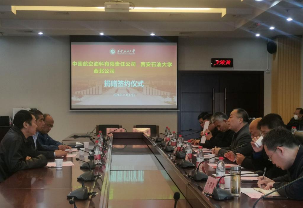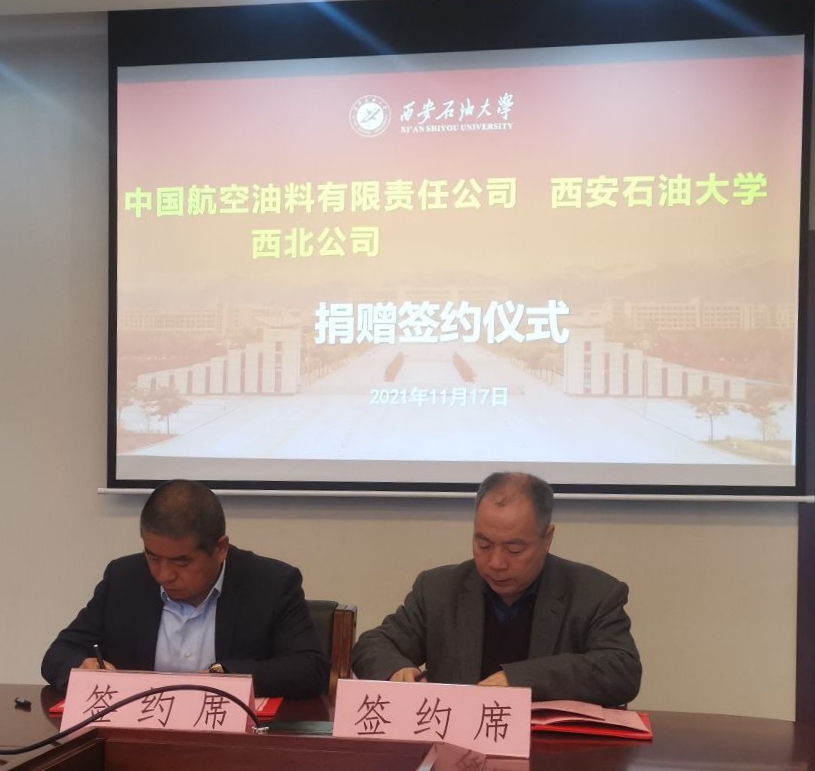 11月17日上午,公司与中国航空油料有限责任公司西北公司捐赠签约仪式在鄠邑校区图书馆第二会议室举行,中国航空油料有限责任公司西北公司副总经理陈少华,公司副董事长陈军斌出席捐赠签约仪式。仪式由实验室管理处处长时保宏主持。